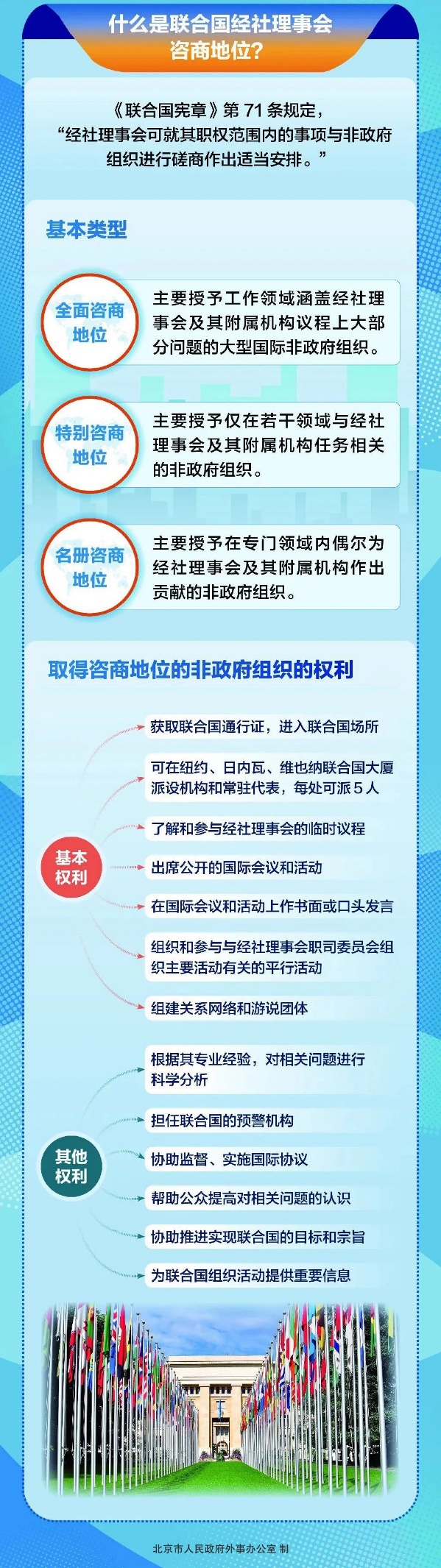 ECOSOC consultative status represents a formal relationship between the UN and social organizations and is an important recognition of their role by the UN. Beijing’s social organizations have been actively applying for this status, going global to share China’s development achievements on multilateral platforms with their own voice.