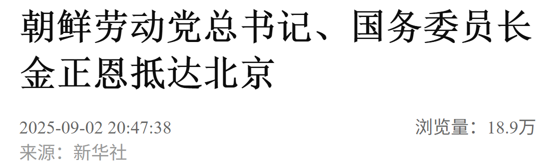 On September 2, Kim Jong Un, General Secretary of the Workers’ Party of Korea and President of the State Affairs of the Democratic People’s Republic of Korea, arrived in Beijing to attend the events commemorating the 80th anniversary of the victory in the Chinese People’s War of Resistance Against Japanese Aggression and the World Anti-Fascist War.