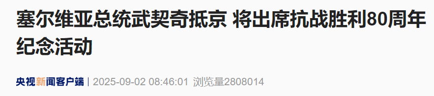 This morning (September 2), Serbian President Aleksandar Vucic arrived in Beijing by air to attend the events commemorating the 80th anniversary of the victory in the Chinese People’s War of Resistance Against Japanese Aggression and the World Anti-Fascist War.