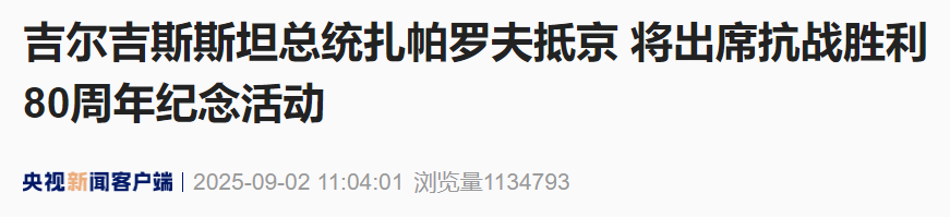 This morning (September 2), Kyrgyz President Sadyr Japarov arrived in Beijing by high-speed rail to attend the events commemorating the 80th anniversary of the victory in the Chinese People’s War of Resistance Against Japanese Aggression and the World Anti-Fascist War.