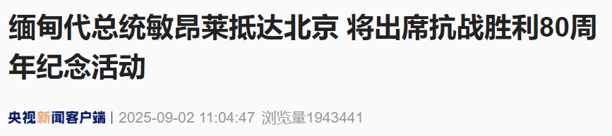 This morning (September 2), Myanmar’s Acting President Min Aung Hlaing arrived in Beijing by high-speed rail to attend the events commemorating the 80th anniversary of the victory in the Chinese People’s War of Resistance Against Japanese Aggression and the World Anti-Fascist War.