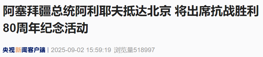 This afternoon (September 2), Azerbaijani President Ilham Aliyev arrived in Beijing by high-speed rail to attend the events commemorating the 80th anniversary of the victory in the Chinese People’s War of Resistance Against Japanese Aggression and the World Anti-Fascist War.