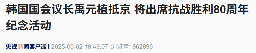 This afternoon (September 2), National Assembly Speaker of the ROK Woo Won-shik arrived at Beijing Capital International Airport to attend the events commemorating the 80th anniversary of the victory in the Chinese People’s War of Resistance Against Japanese Aggression and the World Anti-Fascist War.