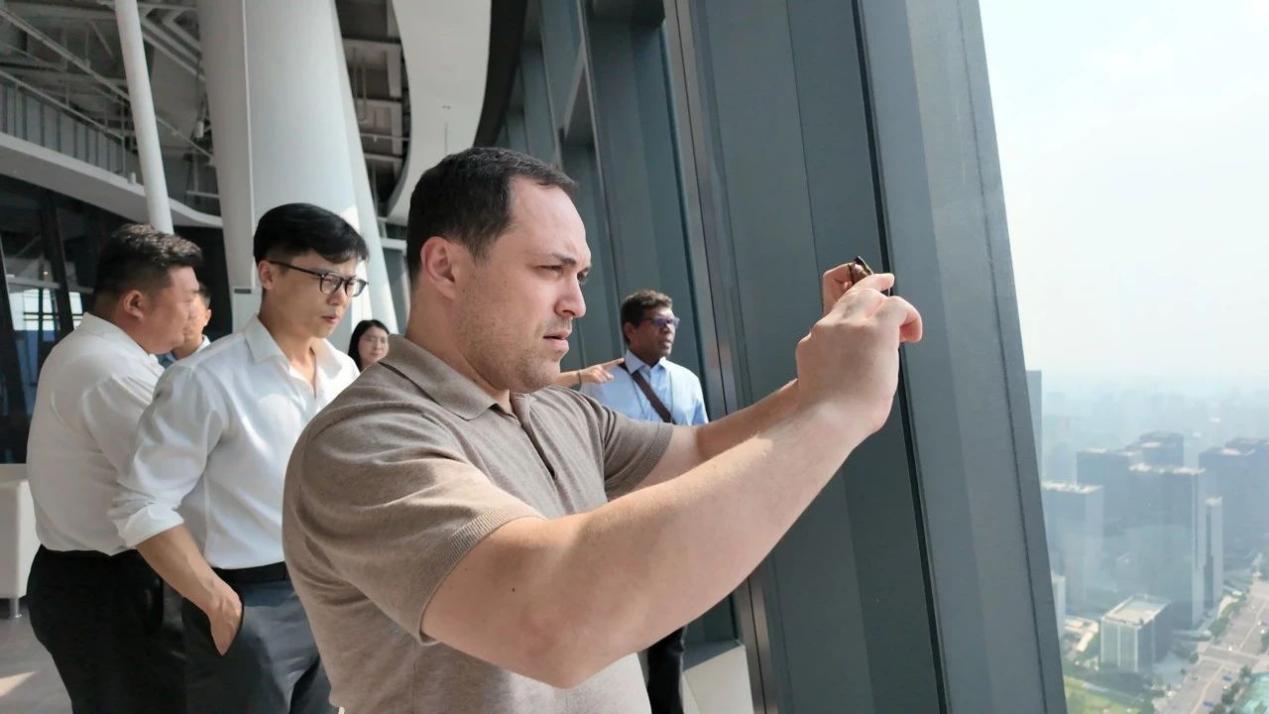 On the afternoon of July 11, international guests of the Global Civilizations Dialogue Ministerial Meeting visited the Cloud Reception Hall on the 52nd floor of Lize SOHO. (Photo by Liu Shuang)