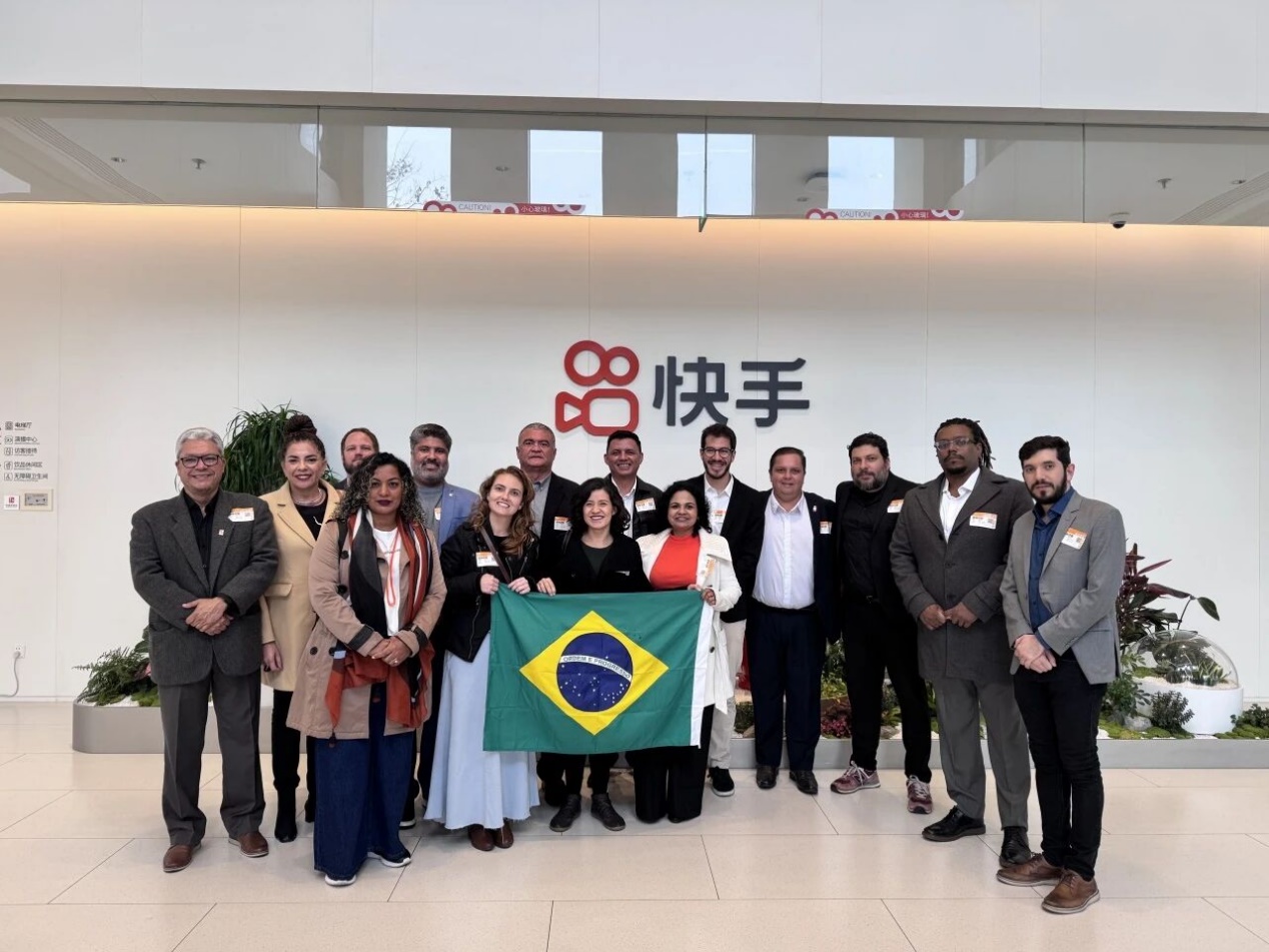 At Kuaishou Technology, the delegation first visited the Kuaishou exhibition hall, where they gained a comprehensive understanding of the company’s technological advancements in artificial intelligence (AI) and video algorithms, as well as the real-world impact of its “short video plus live streaming” model in empowering the real economy and promoting cultural exchanges. Subsequently, at the Kuaishou broadcasting center, the delegation observed the full live-streaming process on site, including key technical aspects such as backstage directing and virtual studios, experiencing firsthand the company’s innovations in short video, live streaming, and AI applications. In addition, the delegation engaged in discussions with Kuaishou staff on topics including digital technology’s role in rural development, the development of creator support systems, and cross-cultural content dissemination. They noted that China’s innovative practices in the digital economy offer valuable insights for Brazil. In particular, Kuaishou’s combination of technological output and business model innovation demonstrates the vast potential for technological collaboration. The delegation expressed hope to foster more practical cooperation between Brazil and China in digital technology R&D and synergies within the cultural industry.