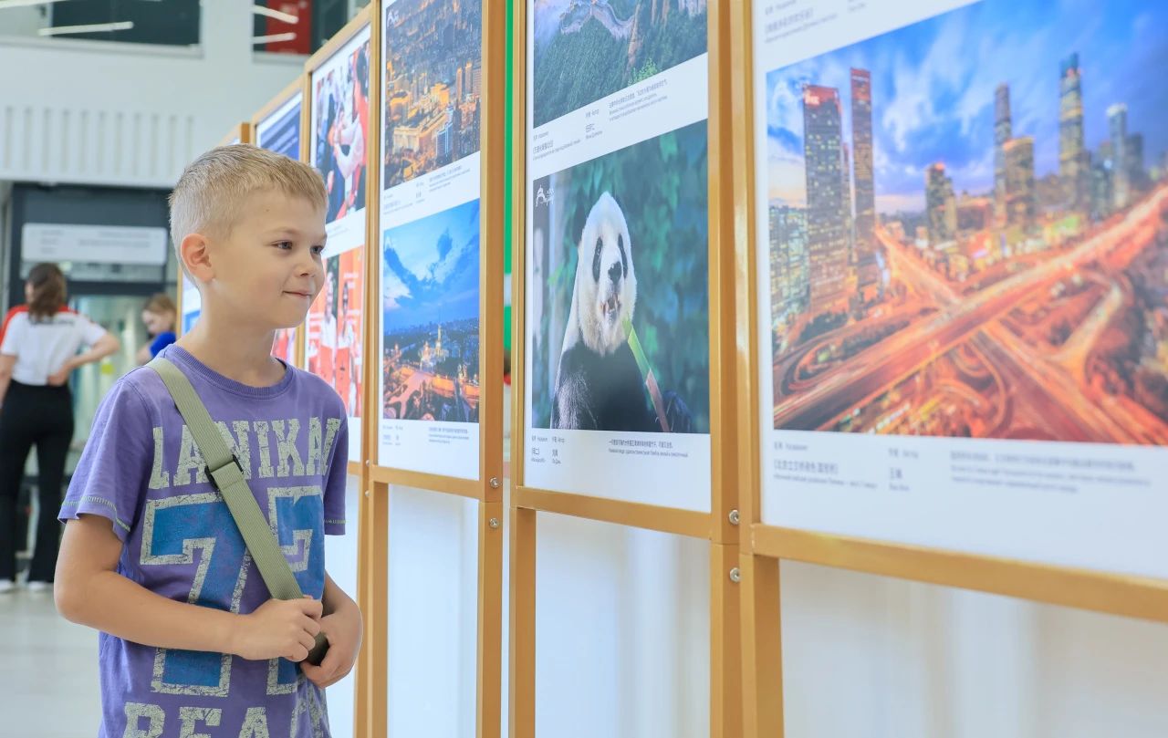 “你好·北京”图片展及非遗作品展现场人头攒动。图片展选取北京历史文化景点、现代化特色建筑和新兴网红打卡点,全面展现北京的城市风貌,更精选了两市历史交往精彩瞬间的照片,吸引了众多观众关注,一些嘉宾情不自禁喊出“Beijing best! ”。