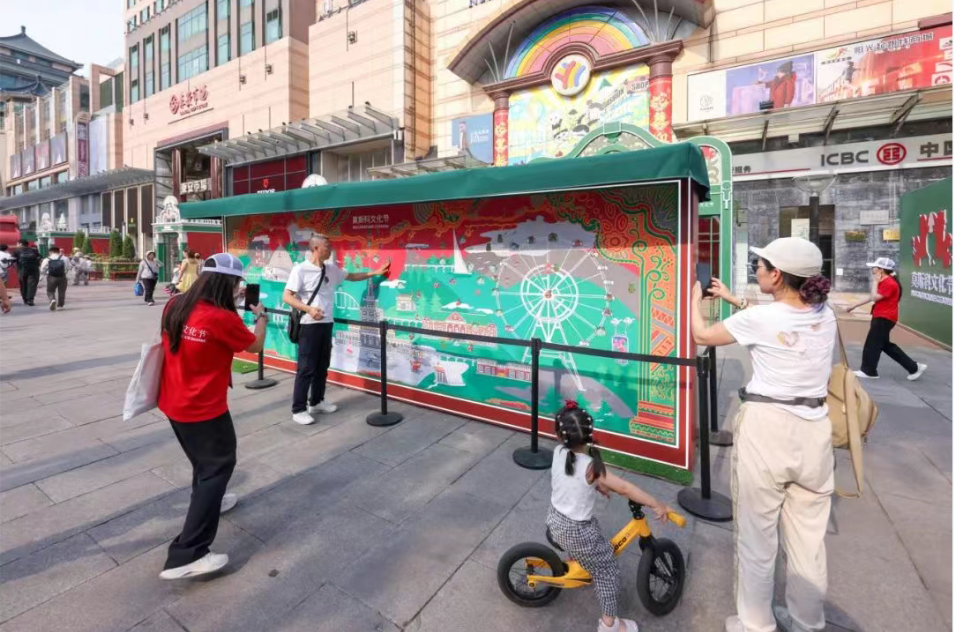 王府井大街化身为充满俄罗斯风情的步行街区,街旁遍布装饰着俄罗斯传统纹样的主题摊位。精心设置的休闲区点缀着白桦树与野花,让人仿佛置身于莫斯科的公园之中,营造出独特的城市氛围。