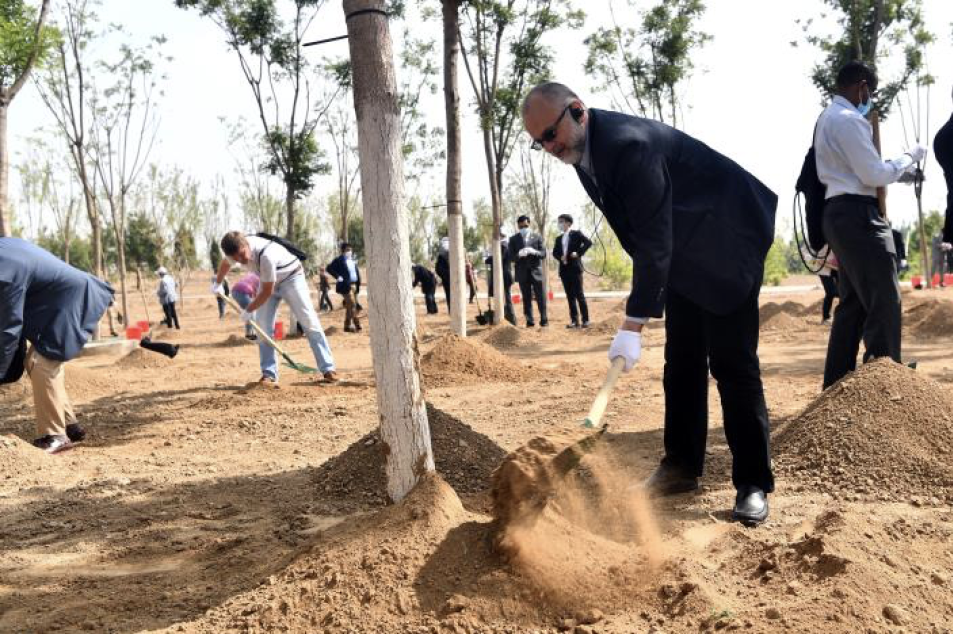 一树新栽宜四邻。在位于金盏森林公园的“驻华使团友谊林”地块,使节们为树苗培土浇水,以实际行动参与绿色北京建设。